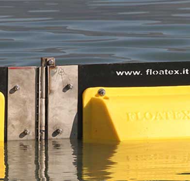 Floating of the barrier is obtained by the application of special horizontally fixed floats giving the oil boom a buoyancy of approx. 30 Kg/m.
