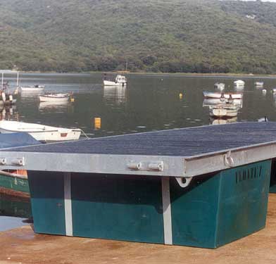 Making use of the most appropriate floating elements within the wide range of own production, FLOATEX realizes floating constructions for various kinds of use, among which: Floating farms for fish breeding; Landing-places for pleasure-craft; Platforms and floating drafts; Platforms for suction and pumping of water.