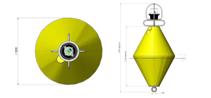 The buoys come complete with a counter balancing weight that guarantees their stability during the mooring, even if the products should break free from its mooring, as per IALA norm requirements.