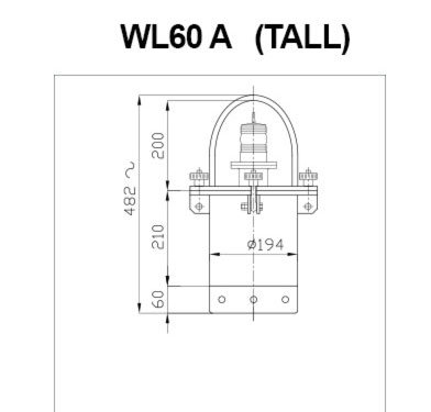 The WL60 winkerlight is available in two configurations, tall and short, and has been designed as a special signalling device easy to mount on the flanges of floating sealines. A set of opposite attachments allows to fix the lantern body to the flange of any hose diameter. Two different models can be offered by FLOATEX one with tubular battery container and high focal plane or another with box type battery container and lower focal plane. It is up to the user to make a choice between these two types according to the distance of mooring cables floating in the vicinity of the installation. To reduce the minimum for battery replacement to a minimum, FLOATEX has designed this type of light signal with a considerable working autonomy, and with a sturdy solid structure. An electronic circuit ensures low consumption even in proportion to the light range of 1 nm, whereas the use of high-thickness shot blasted and galvanized steel structure provides for suitable resistance. The winkerlight WL60 type for floating lines basically consist of three sections: - Top steel plate complete with bow for lantern protection - Tubular section (battery container) ending at the top with a flange provided with a gasket, complete with locking bolts which fixes the top flange to insure watertightness - A special semi circular steel piece with eyelet holes and different diameters suited for the hose on which to mount the lantern, providesfor connection between the lantern and the flange of the floating line to be marked. All hardware shot blasted to white metal, hot-dipped galvanized and PU marine painted to the required colour.